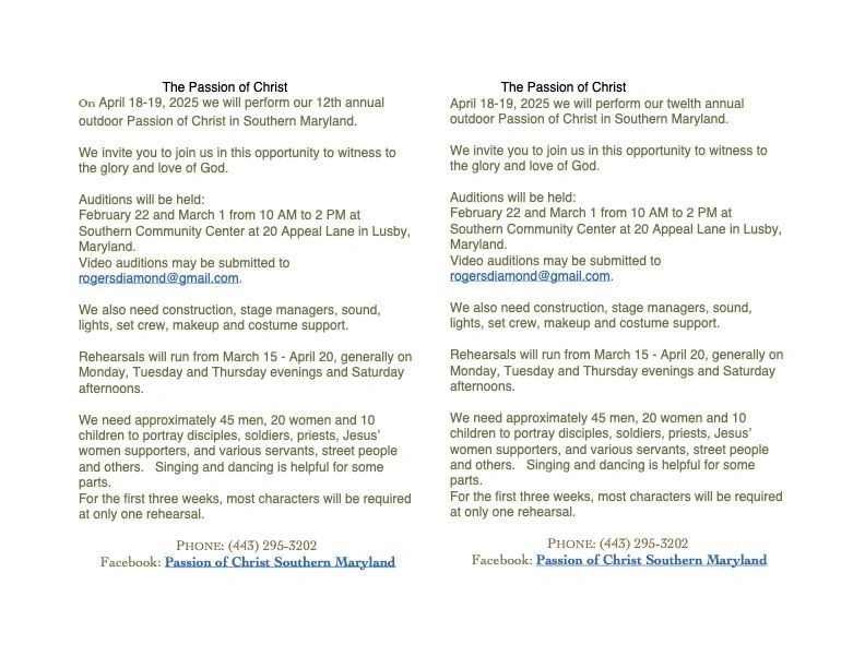 Come find Christian fellowship while presenting the Gospel story in a Christian drama.